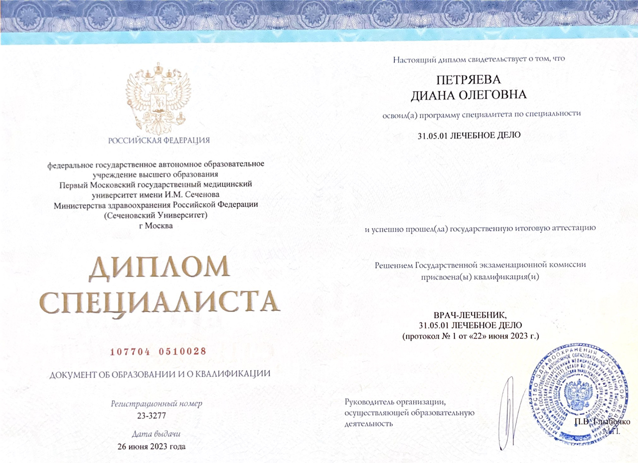Специальность - «лечебное дело».ФГБУ "ГНЦДК" МИНЗДРАВА РОССИИ, ординатура.
